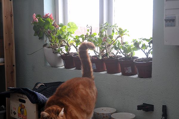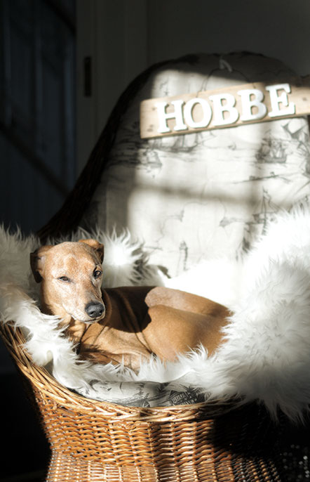 Hobbe är alltid snabbt framme om solen letar sig in. Han lokaliserar solfläcken och ställer sig helt enkelt bara och väntar. Väntar på att matte eller husse ska hämta något att ligga på. En filt, om solen når ner till golvet, eller som i det här fallet, när solen inte står tillräckligt högt, Hobbes fåtölj. Och Hobbe har lyckats bra med den uppfostran för nog hämtas det grejer alltid. Och det här har Hobbe lyckats med, helt utan klicker eller kurser. Heja Hobbe.