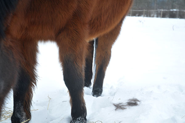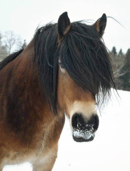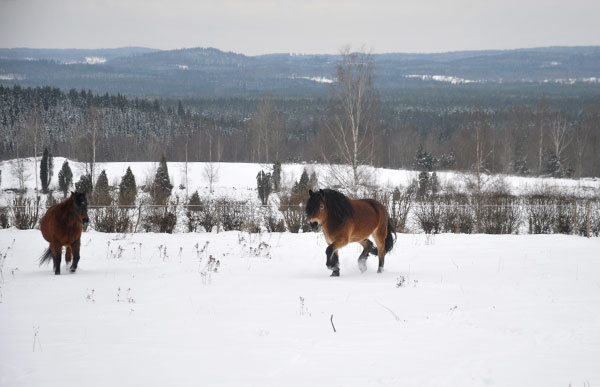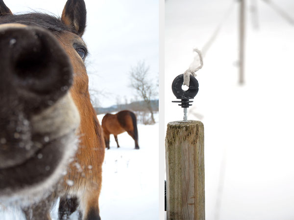 Hästarna verkar må bra. Jag försöker vara en bra matte och låter dom byta hage ibland. Deras ordinarie hage erbjuder ju bara barmark under snön så jag brukar släppa dom i hagen i trädgården någon dag varje helg. Där finns både buskage, lite gräs att nypa av och lite andra utsikter. Då tror man ju att hästarna kanske kan vara nöjda med det, några timmar eller så. Men oftast dröjer det inte lång stund förrän de är någon helt annanstans… Den hagen är tydligen mer lättrymd ifrån så då gör dom just det, rymmer. Men de brukar hålla sig i trädgården så… Ja, de får väl hållas då… De betar ju ner blommorna som jag inte iddes klippa ner i höstas. Har dock satt upp lite extra trådar och sett till att elen når fram så någon gång kanske de kan hålla sig på plats? Nä, kanske inte.